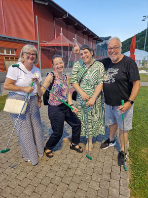 Links hinten: Heinz Büttler (Präsident), René Eichmüller (Homepage), Petra Monte (Leiterin Freizeitklub), Maria Kaufmann (Vizepräsidentin), Ilknur Kalabesi (Beisitzerin)